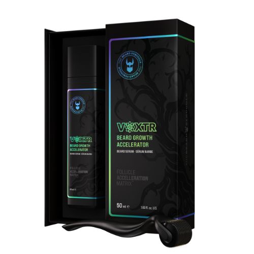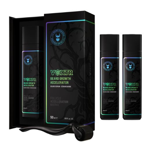 Voxtr Beard Growth Accelerator: Our specially formulated Follicle Acceleration Matrix™ harnesses the power of scientifically researched ingredients to stimulate hair growth and promote healthy follicles. Experience the luscious, attention-grabbing beard that you've always desired.